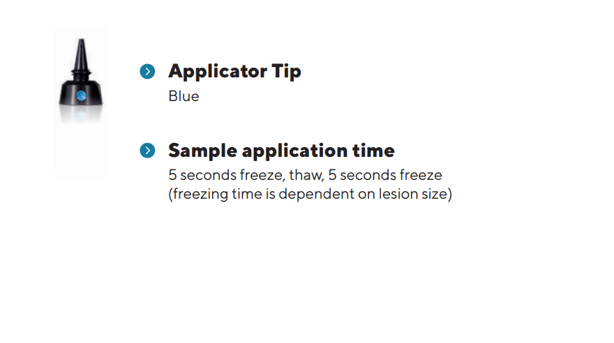 Actinic keratoses must only be treated by a medically qualified practitioner due to their pre-cancerous nature. A full clinical assessment is carried out prior to treatment to confirm suitability and ensure patient safety.The lesion is treated using a controlled cryotherapy application, delivered with precision from approximately 4mm above the skin. The applicator is held at a 90-degree angle, allowing targeted delivery while protecting surrounding healthy tissue. A light, even white frost forms across the lesion, followed by a subtle glossy appearance, indicating effective freezing.Treatment is performed in two freeze cycles, separated by a short thawing period of around 30 seconds. Immediately after treatment, the area may appear reddened, reflecting a normal inflammatory response caused by microscopic changes within the tissue.