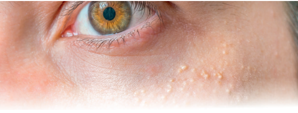 Milia are very small, raised bumps that appear white or yellowish in colour and typically measure 1–2 millimetres in size. They are a type of tiny skin cyst filled with keratin, a natural protein found in the skin.